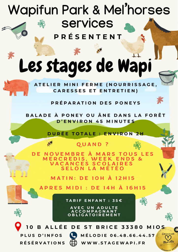 D’ici la, découvrez nos stages organisés de novembre à mars, sur réservations uniquement 🙂 ( Voir affiche plus haut )